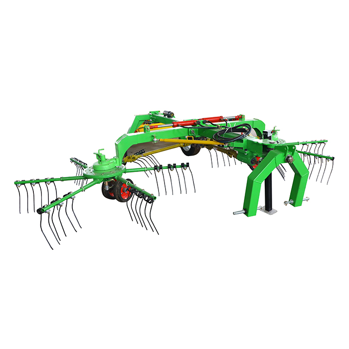 Sen käsivarsi ja hammastettu jousi voivat levitä ja kääntää suuren alueen hajallaan ruohoa, olkia jne., Jotka ne kuivuvat kokonaan ennen niputtamista. Lopuksi se on integroitu nauhanmuotoon paalaimen poimimiseksi ja niputtamiseksi, jotta voidaan parantaa poiminnan puhtautta ja parantaa työn tehokkuutta.