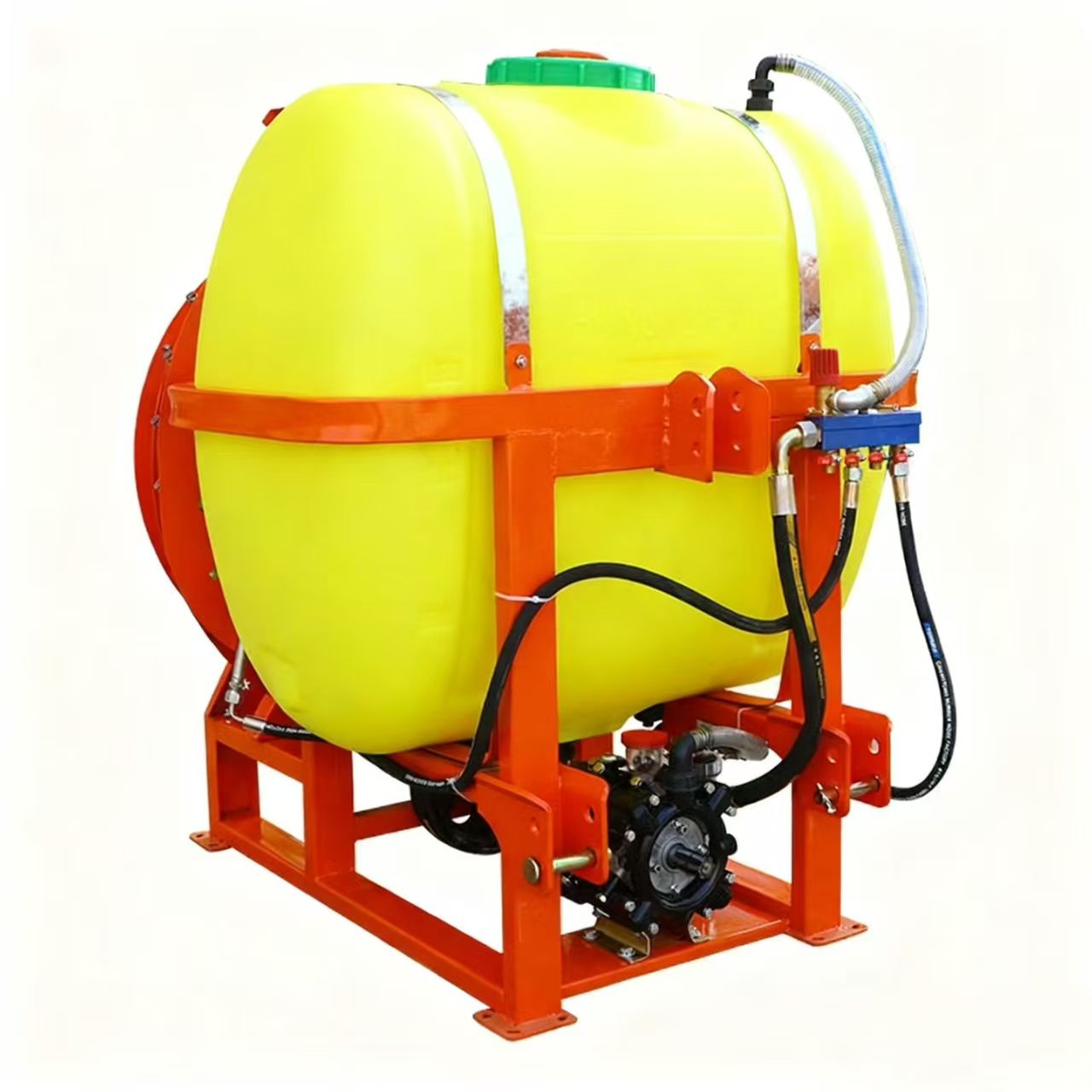 Ruiskun ytimessä on suurikapasiteettinen polyeteenisäiliö, joka vastustaa torjunta-aineiden korroosiota ja varmistaa pitkäaikaisen käytön; sen kirkkaan punainen viimeistely parantaa näkyvyyttä tiheissä hedelmätarhoissa ja vähentää törmäysvaaraa. Säiliö liitetään tehokkaaseen keskipakopumppuun, jota ohjaa suoraantraktori'sPTO-järjestelmä, joka tuottaa tasaisen vedenpaineen torjunta-aineiden tasaisen jakautumisen takaamiseksi.